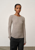 Introducing the Camb Blouse in Merino Wool: A round neckline sweater made from Merino wool, designed with a tight fit.
