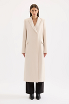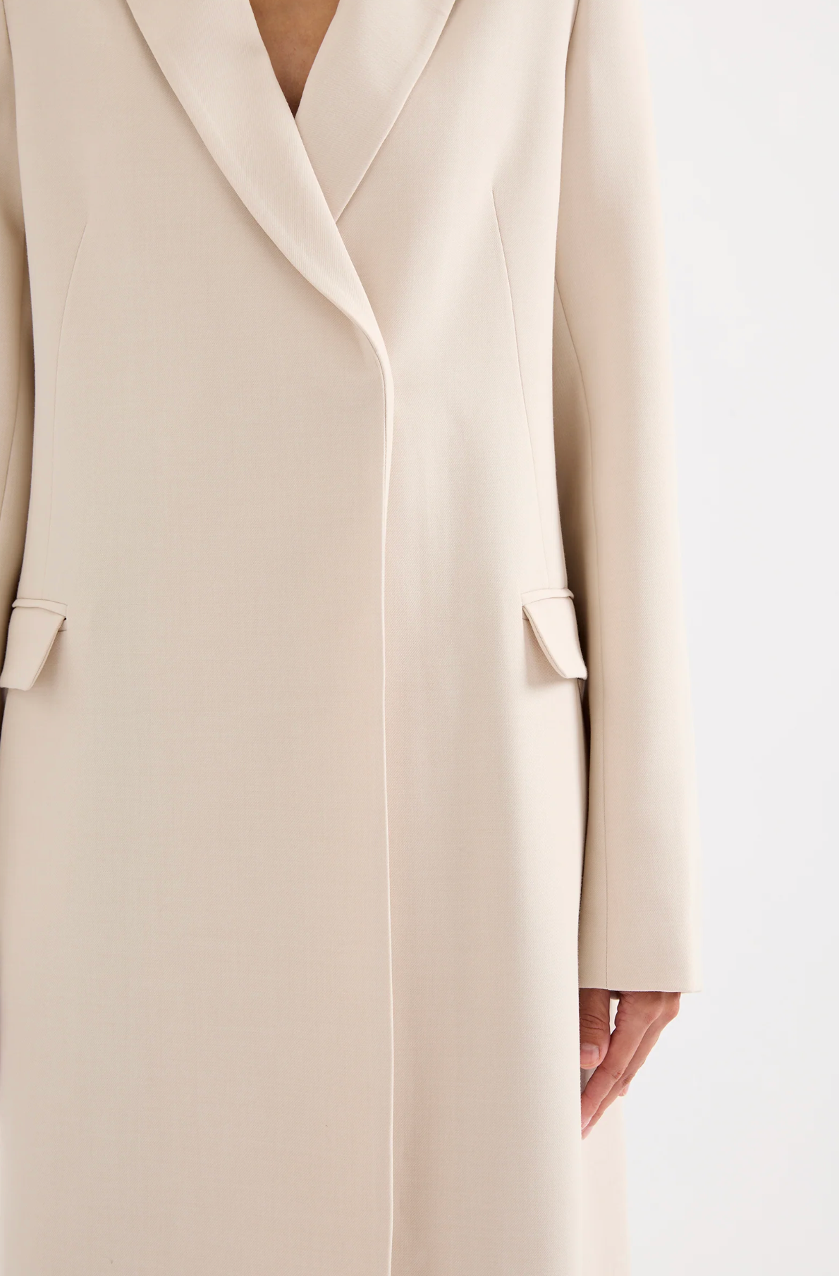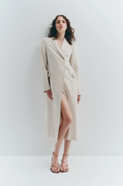 The Jules Longline Blazer is made from a midweight tailoring fabric which has a smooth hand feel and a subtle visual texture. The silhouette is a structured, longline, single breasted shape with classic sloped shoulder, slim fit body & full length sleeve. Features include traditional tailoring detailing throughout, tailored vents at sleeves and back of body and Nude Lucy branded buttons.