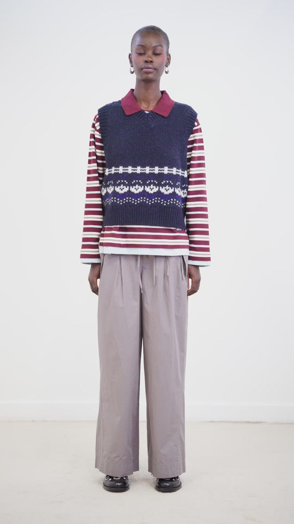 A modern staple with thoughtful detail, the Rhona Lambswool tank is a boxy-fit knit featuring a sharp V neckline and a minimalist front, whilst our DM house motif on the back adds a quiet touch of character. Crafted from 100% certified responsible wool standardwool, it serves as a trans-seasonal wardrobe hero.