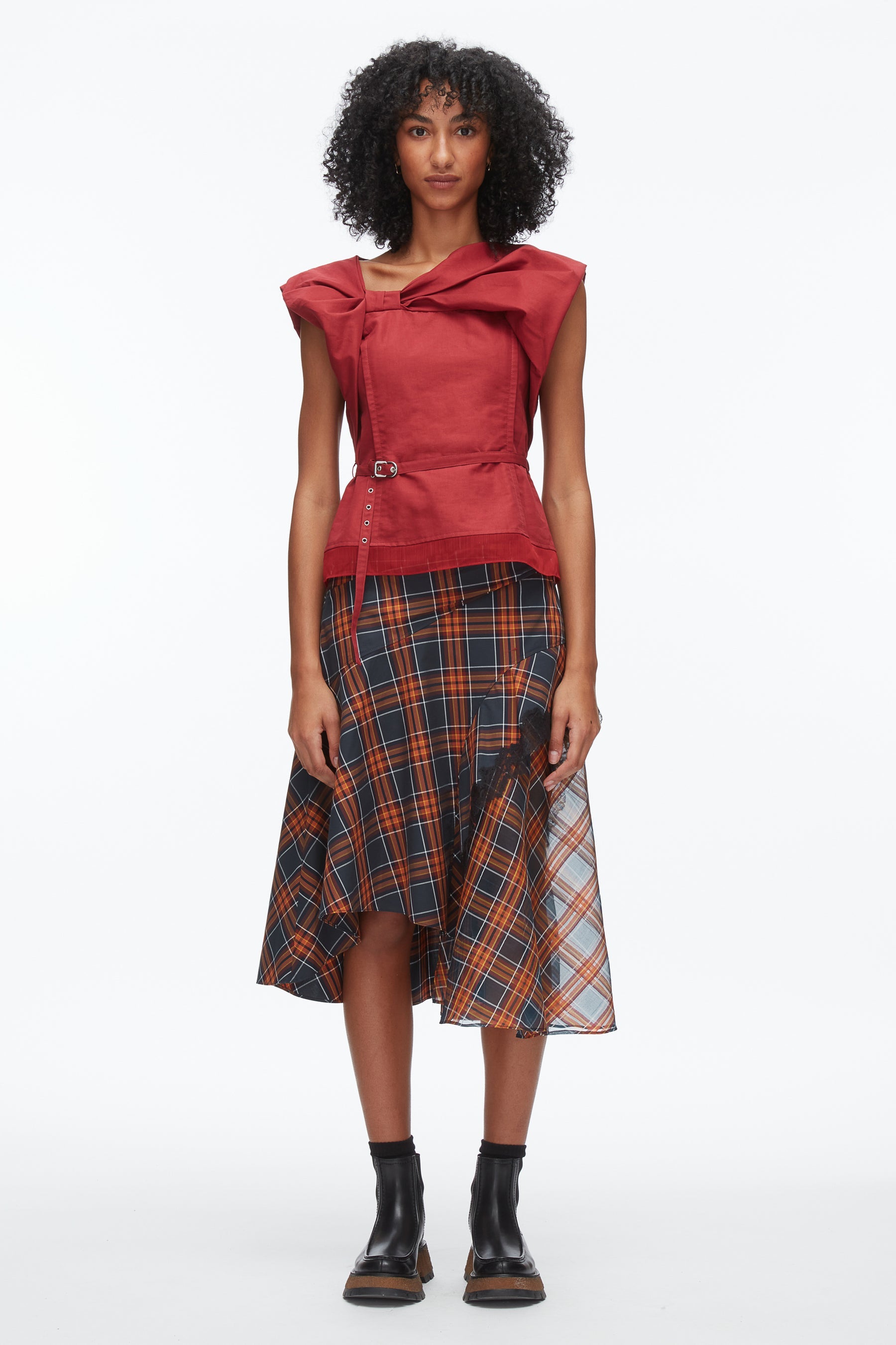 DRAPED MIDI SKIRT W ORGANZA COMBO