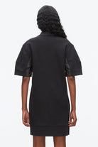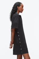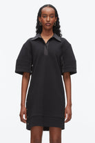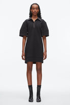A cool-girl take on sporty minimalism—laid-back, unexpected, and effortlessly pulled together. This French terry polo dress features an exaggerated sleeve and nylon ripstop collar for a hit of utilitarian edge. Tonal trim details and side snap buttons offer adjustable styling, making it perfect worn solo or layered over a printed skirt for a modern, mixed-media look.