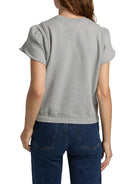 Thoughtful details elevate this otherwise casual top from 3.1 Phillip Lim. Crafted of gray mélange cotton terry, this style is designed with tulip sleeves and a slightly blouson waist.