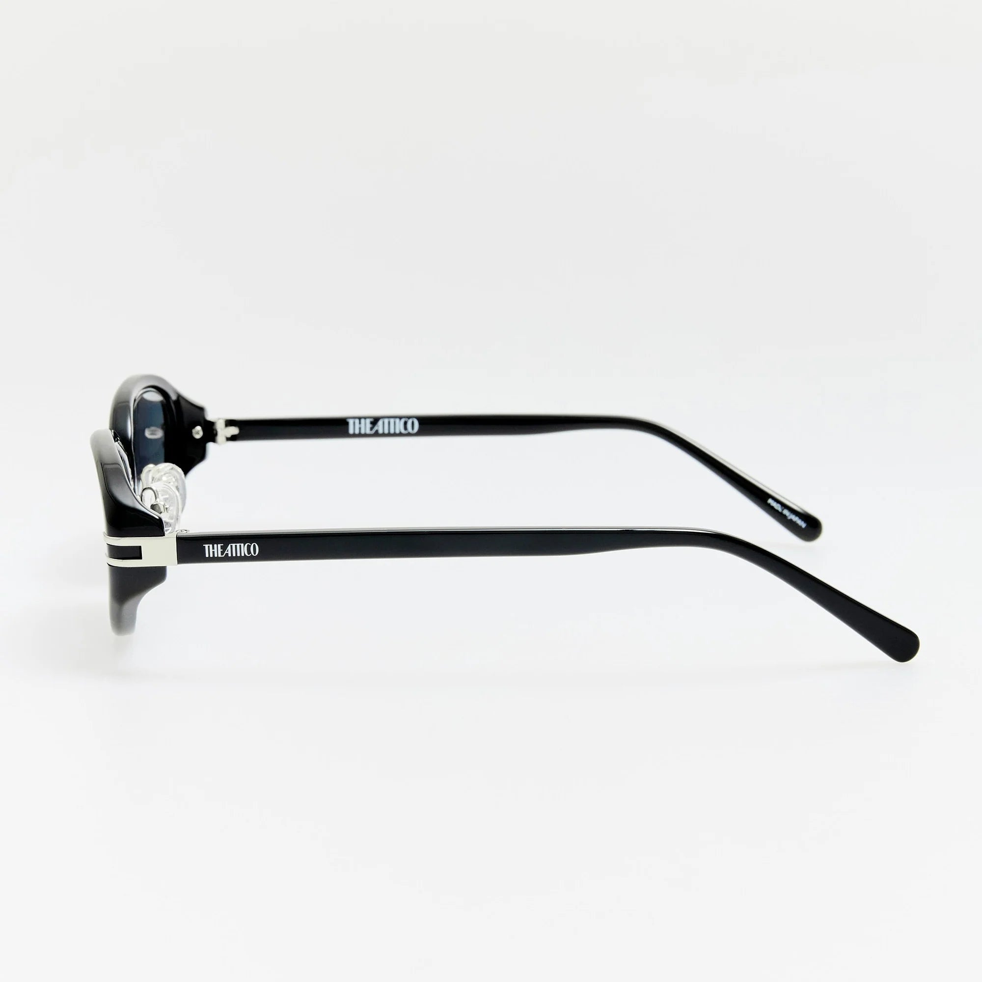 Introducing the Ambra Oval Frame. Crafted from Italian acetate in black this frame is fitted with grey lenses offering full UV protection and adjustable silicone nose pads that offer a tailored fit by allowing bespoke positioning for enhanced comfort. Slim temples are accented with silver branding.