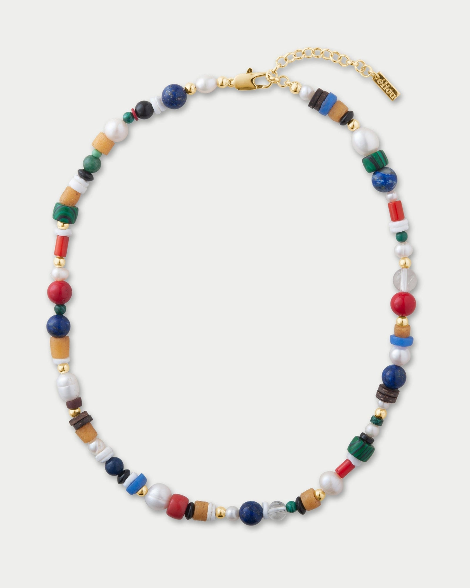 Eliou's take on the “kitchen sink” necklace. Hand-strung in Miami by our team of female artisans, the Bodie necklace is composed of an mix of freshwater pearls gemstones, glass, and ceramic beads. Each one is slightly different, ensuring no two pieces are exactly alike.