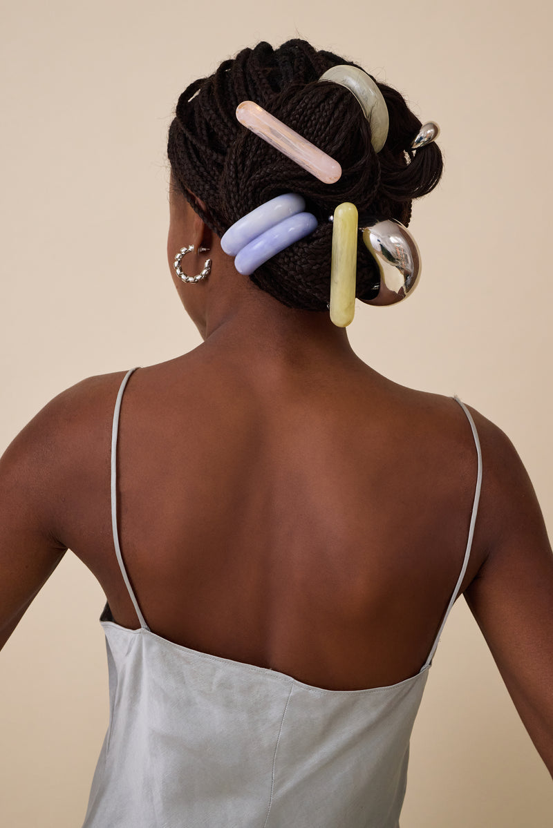 This Marbled Double Arch Pony is the perfect way to add a splash of color and fun to any hairstyle. Made with durable acrylic, this style can be mixed and matched with the Marble Capsule, or the Glossy Capsule to create a unique and exclusive look.