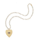 A little love, a little protection - the perfect combination! This heart pendant is accented with an evil eye made up of lapis and white topaz stones on the front and has the inscription GARDEEZ BIEN on the back side - French for Guard Well. Most believe that the evil eye protects you from negativity being cast your way - but at Jane Win we have a more optimistic approach. Our evil eye is designed as a little reminder of your strength and that negativity can be beaten with positivity. Face the world with a smile, a heart full of love...and layers of jewelry that mean something to you.