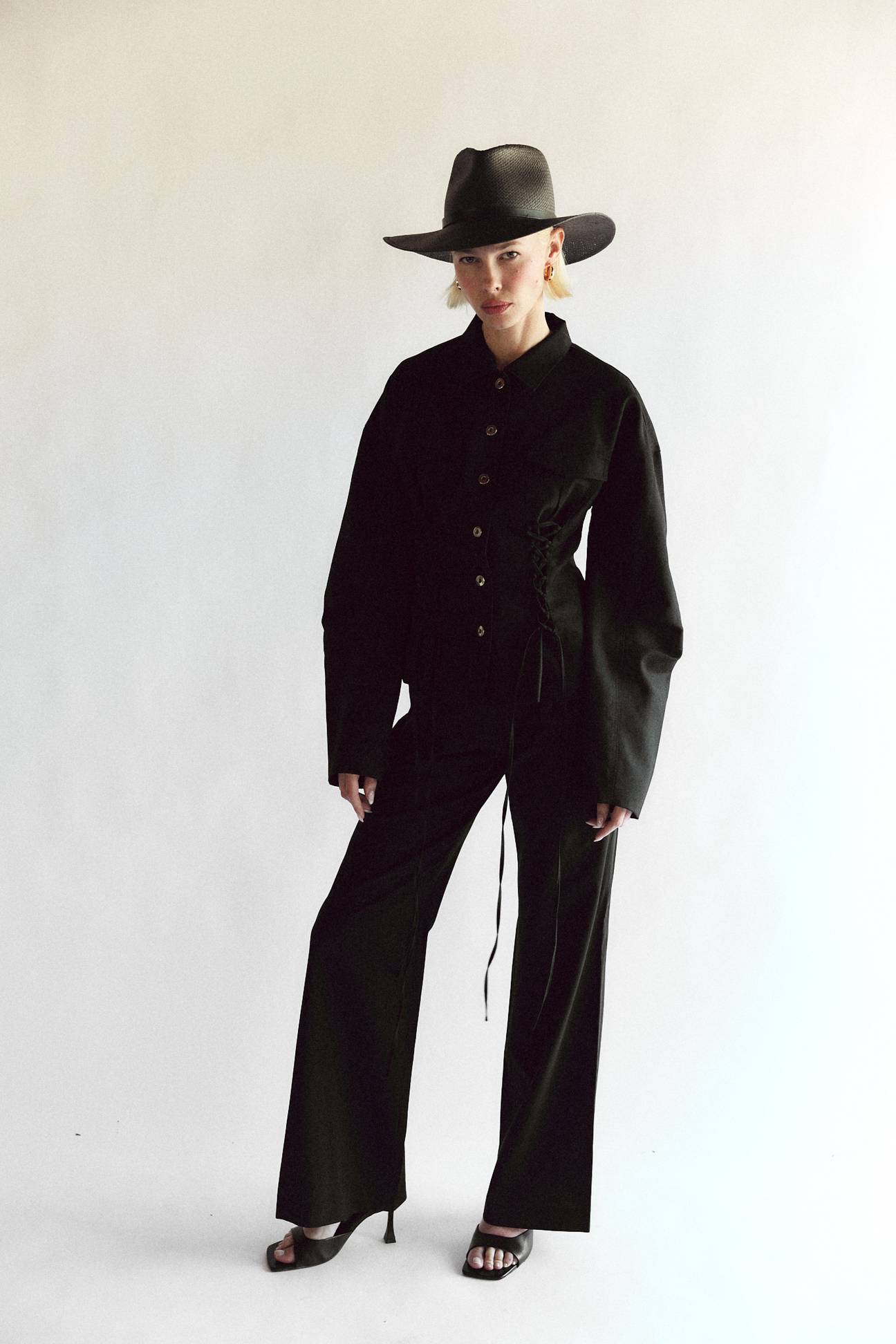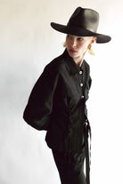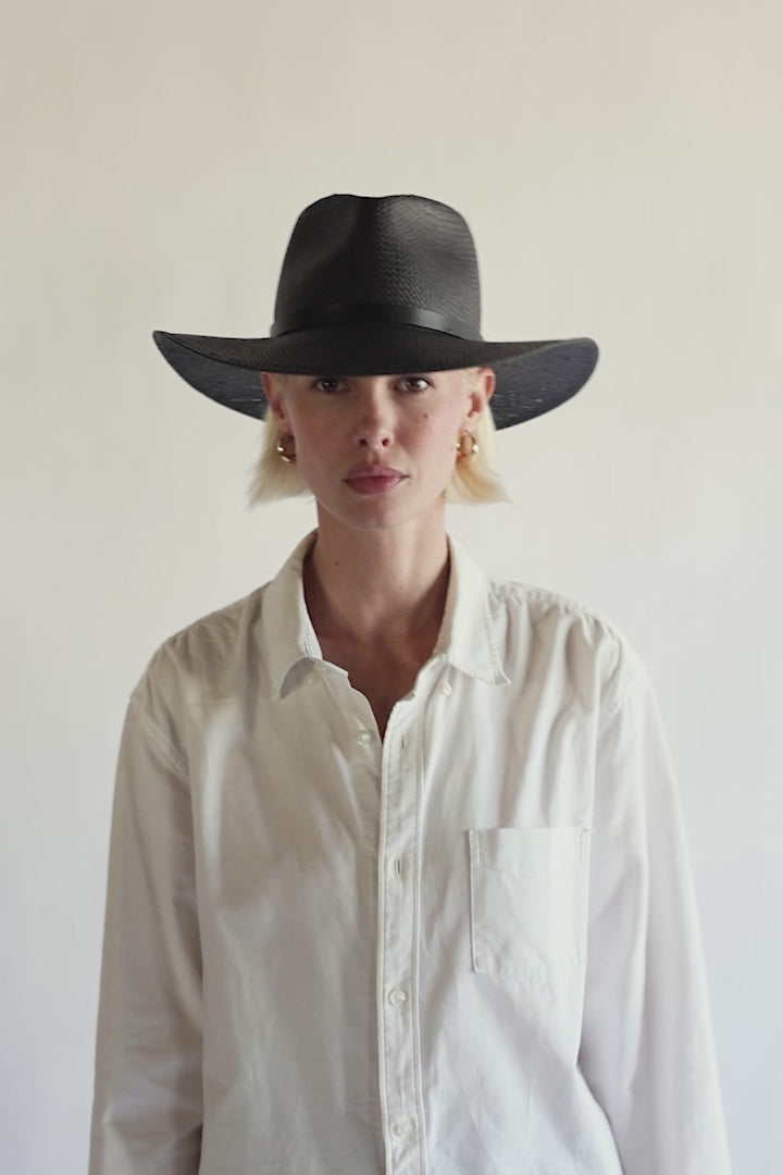 An edgy monochromatic take on the classic fedora. The structured fit creates a beautiful modern shape while staying true to the timeless design of our classic fedora. This effortless piece can easily be worn year-round and is meant for traveling with you wherever you go.