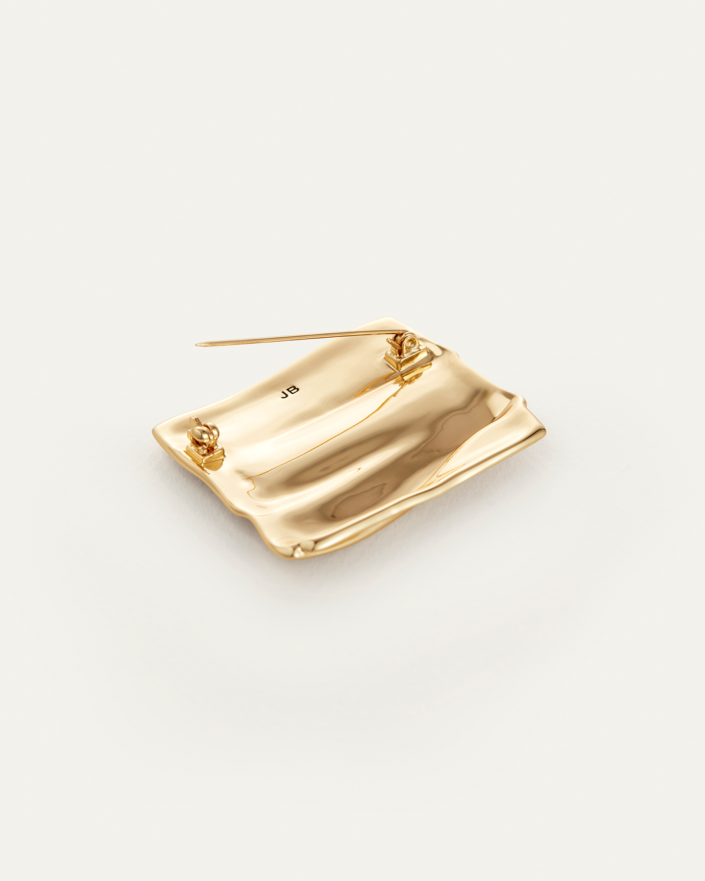A tile-shaped brooch with a surface that mirrors the natural grooves found in sand dunes. Outfitted with a pin on a hinge and finished in high-polish gold.
