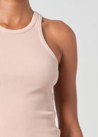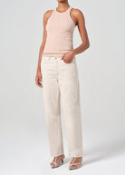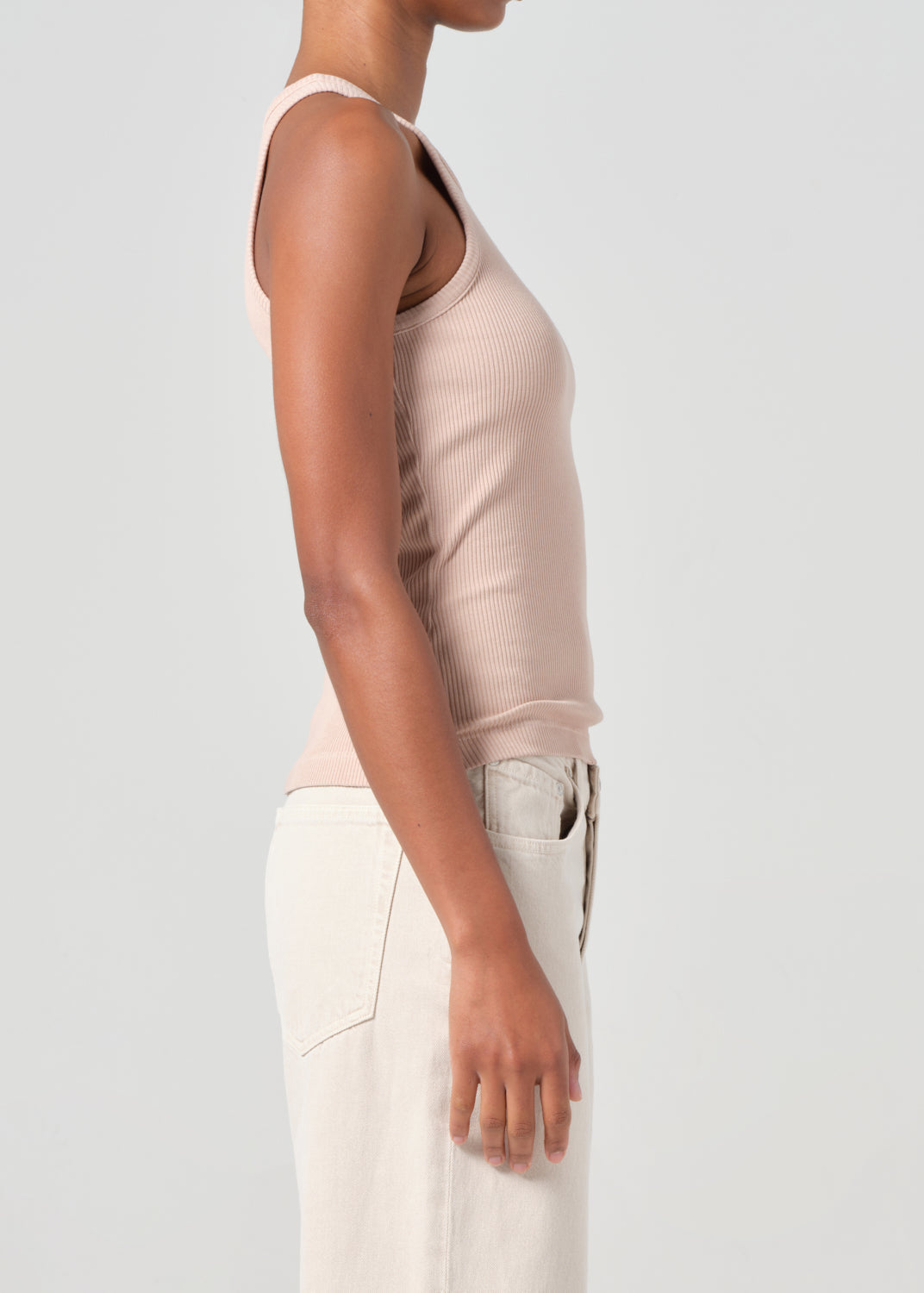 The Rayne showcases a sporty high neckline and is made from AGOLDE’s signature ribbed fabric, highlighting its close fit.