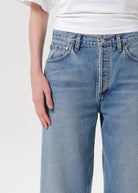 The Twist Low Slung Baggy sits low on the hips with a relaxed, voluminous leg and signature twisted outseam. Crafted from rigid, marbled indigo denim with a soft hand, this pair offers a vintage-inspired feel with directional edge. Style with a tucked-in tee or cropped jacket to highlight the shape.
