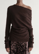 The Freya Top is a modern, sculptural take on the off-the-shoulder sweater. Crafted in a soft alpaca and Merino wool blend in a deep plum hue, this lightweight brushed knit feels cozy yet refined. The asymmetric off-the-shoulder silhouette and long sleeves create subtle drama, while the drapey finish allows for effortless styling—perfect layered under a blazer, paired with tailored trousers, or worn with skirts for evening occasions.