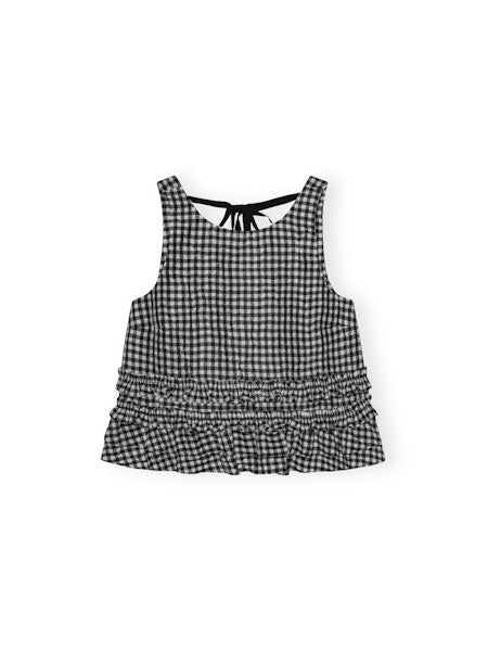 CRINKLED TAFFETA CHECK OPEN BACK FRILL TOP