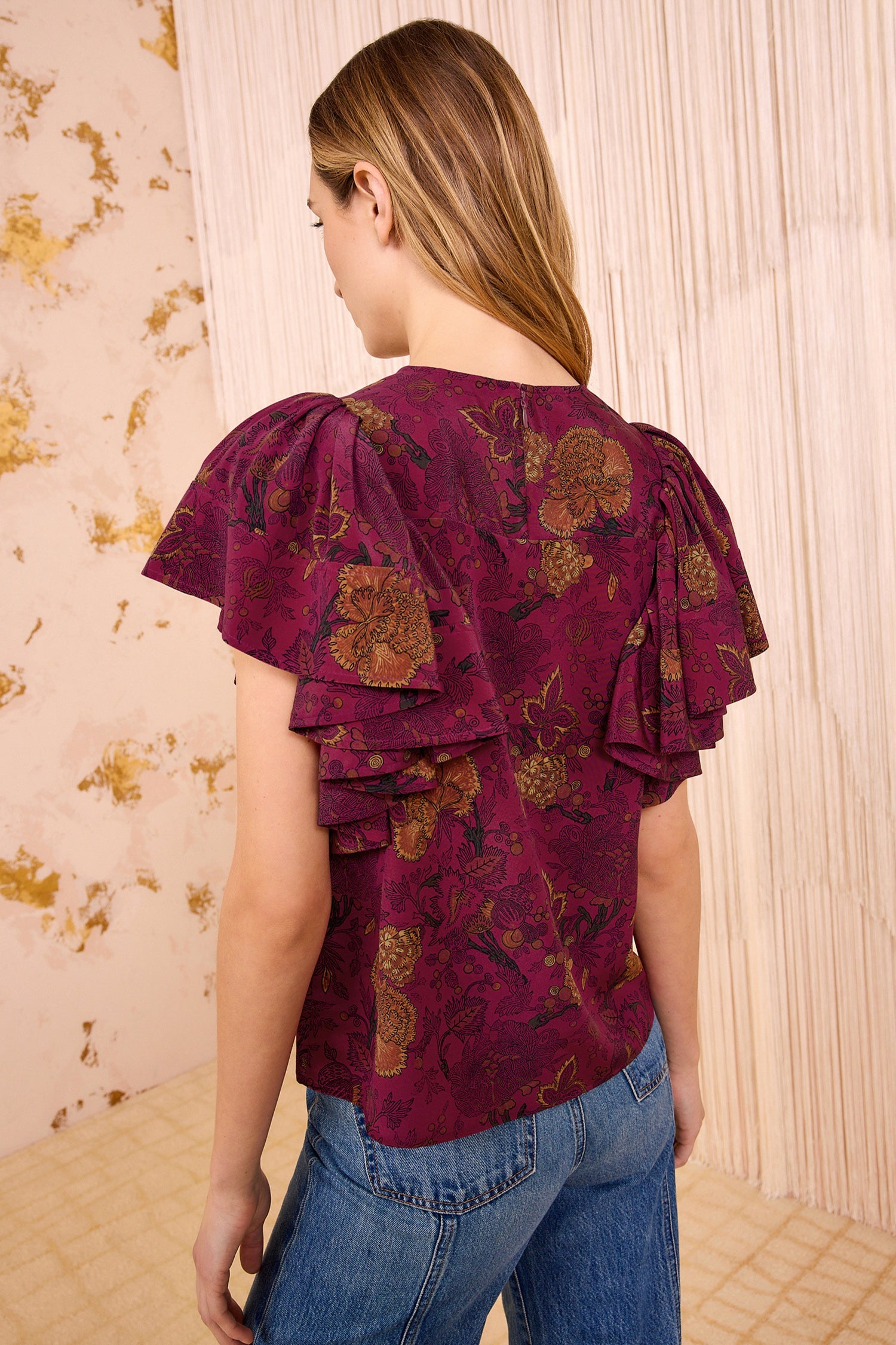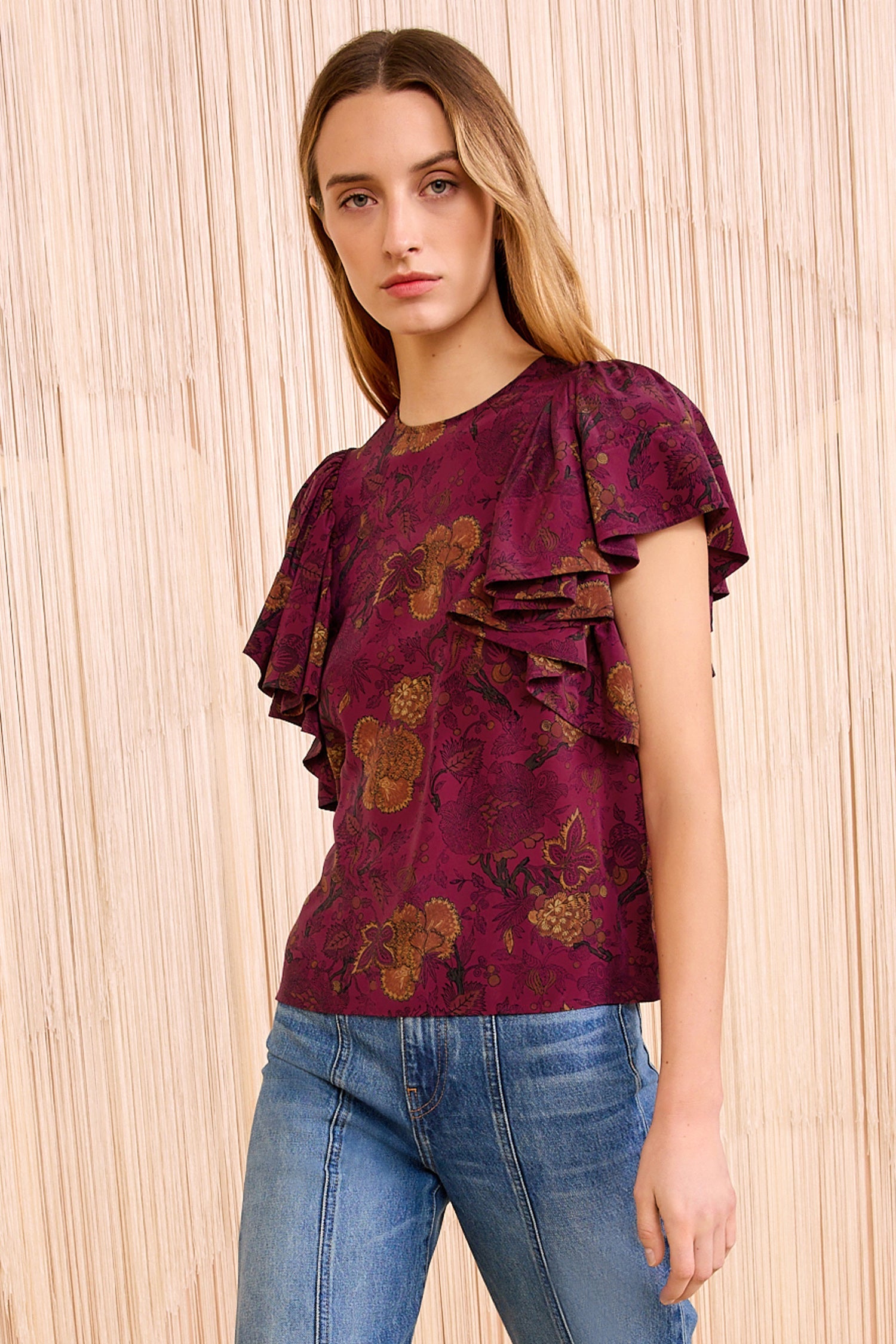 LENA SILK FLUTTER SLEEVE BLOUSE