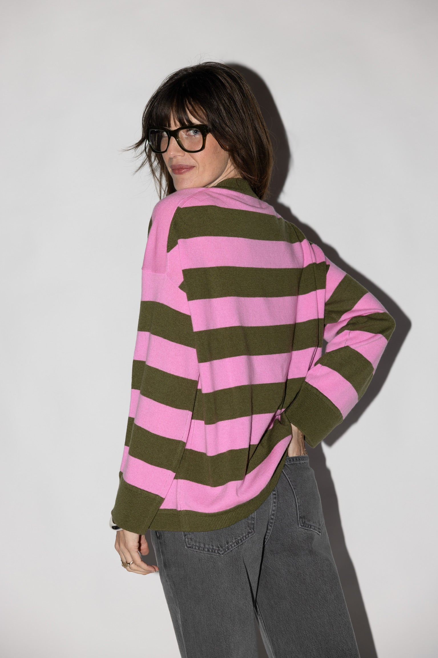 RD PULLOVER SWEATER IN WOODLANDS/PLASTIC PINK