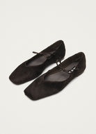 Crafted from brown calf hair uppers, these ballet flats feature square toes and a delicate bow that securely holds the foot. Their flexible outsole enhances comfort, making them the perfect choice for almost any occasion.