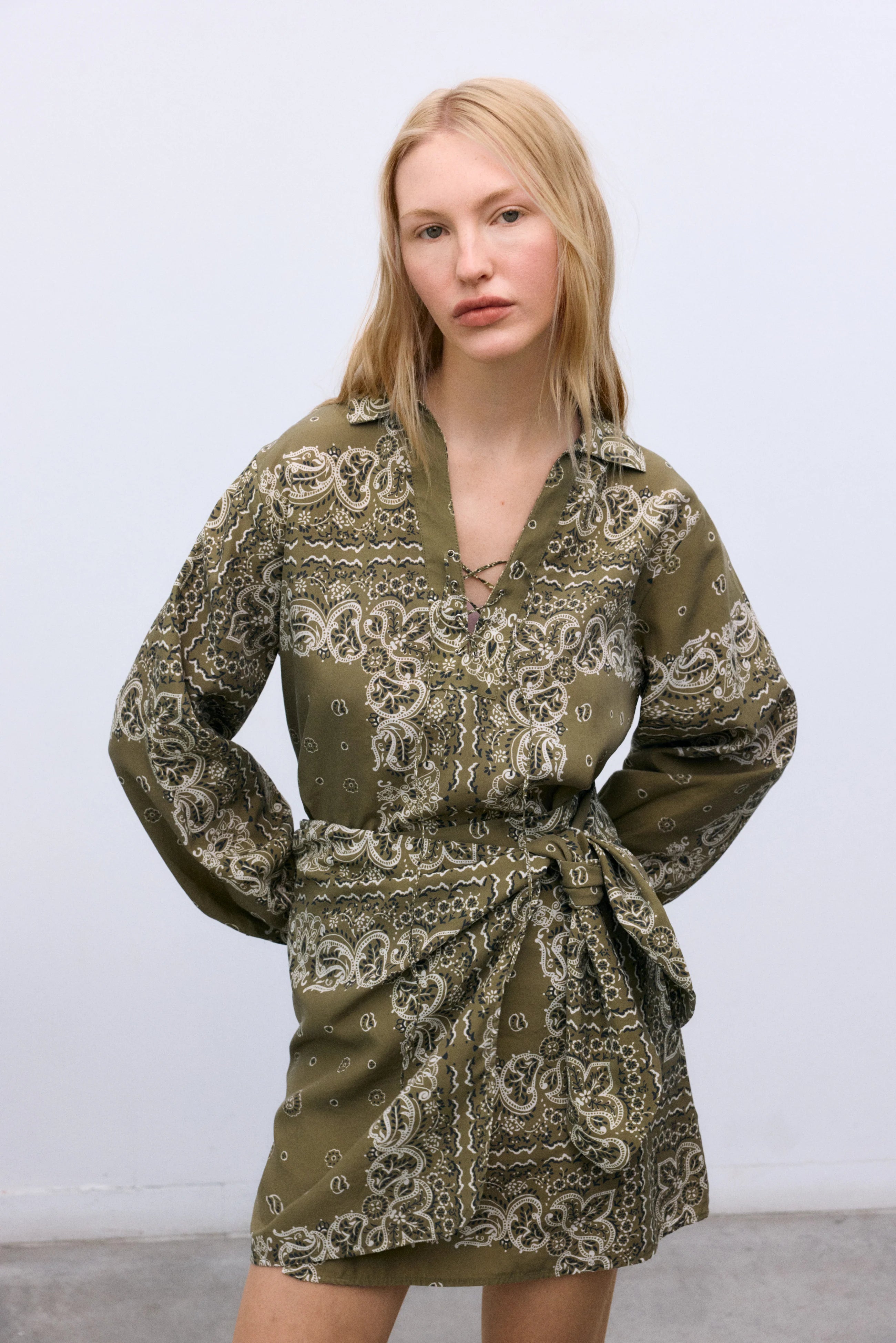 Wrap style skirt in soft, fluid tencel with a front overlap and hidden button closure for a clean finish. Features a beautiful bandana print that adds character.