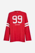 The Jeevana Top is a laid-back essential with sporty prints on the front and sleeves. The long-sleeved top is made in soft organic cotton and has a comfortable loose fit with a classic crew neck. Pair it with your favorite jeans for a cool and comfy outfit.