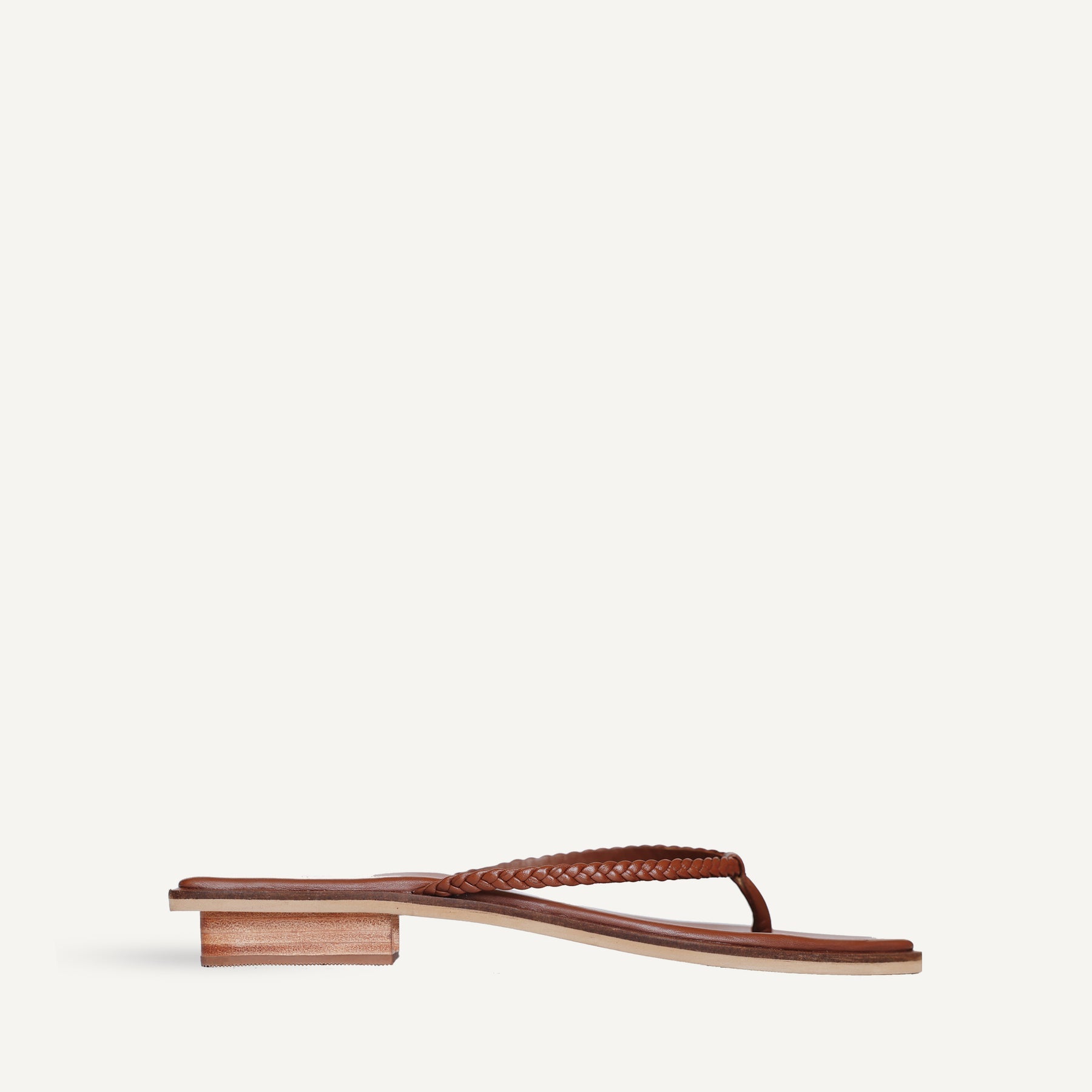 Chic leather flip flops that are comfortable to boot. The braided leather straps are smooth, flat leather on the underside. Features a low stacked heel to give you a little extra height and a padded sole for all-day comfort.