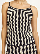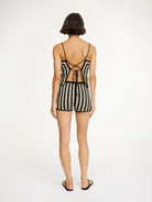 Combining bohemian and graphic design notes, the crocheted Doria top is sure to turn heads. The organic cotton design has an open back, where its adjustable straps are artistically tied, and a straight neckline. For a set with a point of difference, pair with the Dor shorts.