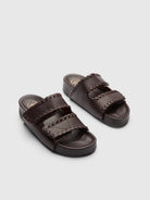 Slip into our comfy sandals Furlo with a stitch detail. Handmade of vegetable tanned leather in Italy with a sole height of 4 cm. Adjustable with a velcro closure.