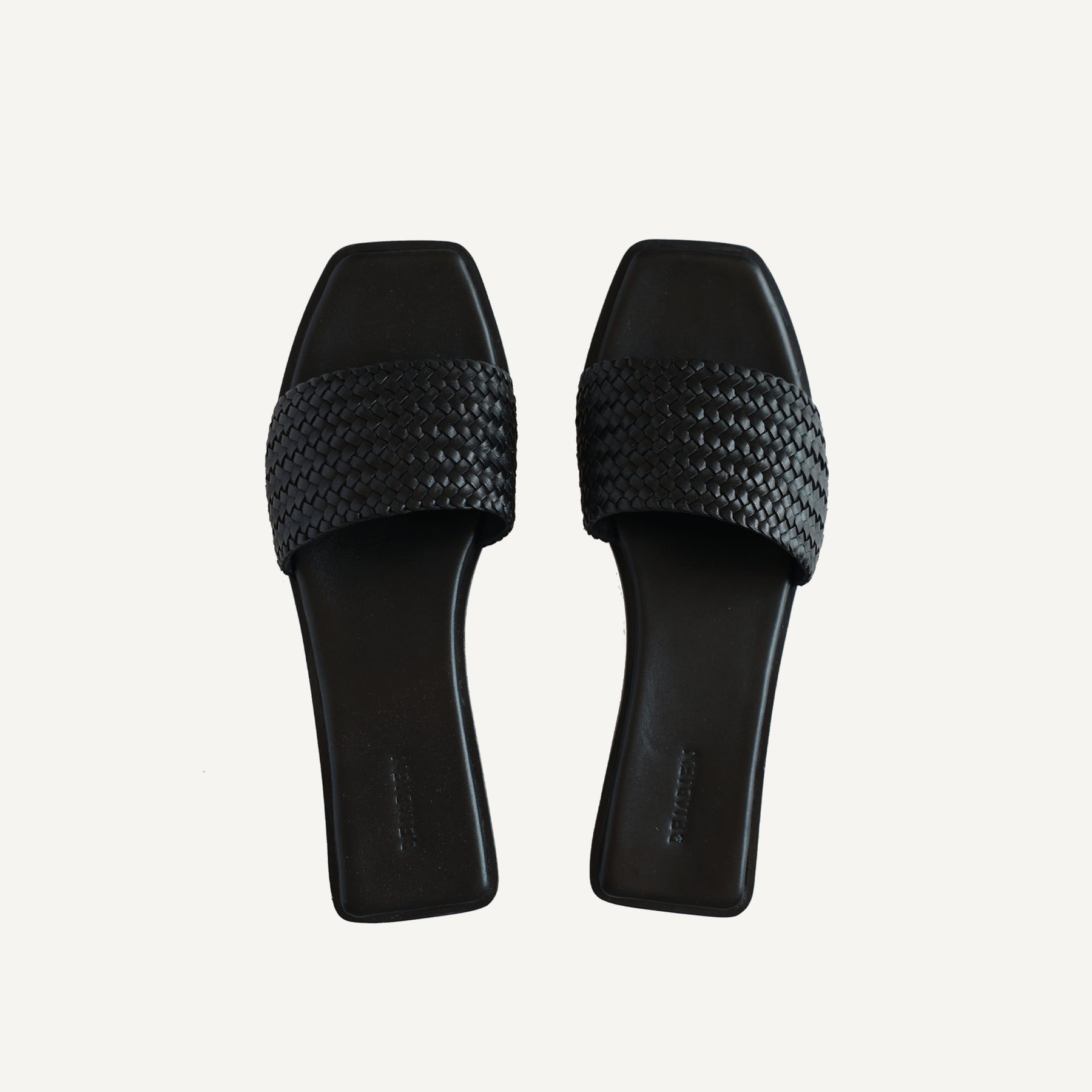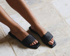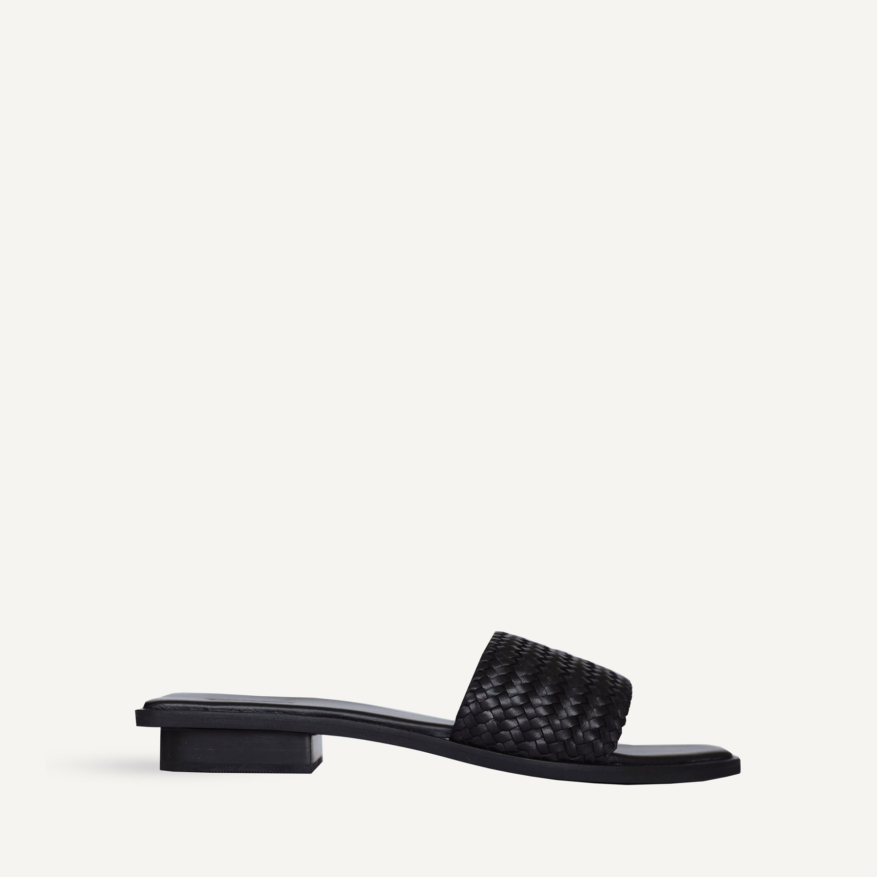 A classic summer slide (and our most comfortable). The wide, handwoven leather strap is smooth and padded on the underside. Features a low stacked heel to give you a little extra height and a padded sole for all-day comfort.
