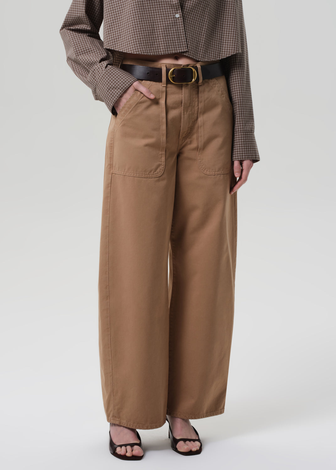The ‘Ayla Cargo’ reimagines the baggy silhouette with utilitarian pocketing and structured ease. Style with pared-back knits or tonal layers for a modern, utilitarian look.