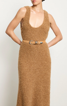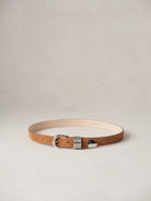 The debut style of Déhanche radiates a subtle yet sophisticated aesthetic that encapsulates the essence of polished dressing. The 5-ring belt is handcrafted in Italy from luxurious calfskin suede and signature beige suede lining. The shining silver hardware buckle, rings and belt-tip add polish to any look.