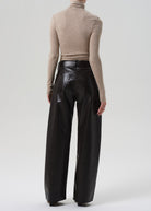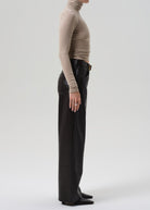 The ‘Ayla’ offers a refined take on the baggy silhouette with a relaxed fit that sits away from the body while maintaining a clean, intentional shape. This version is crafted from buttery recycled leather in a rich chocolate brown, finished with slight stretch for added ease. Style back to tonal leather shirting for a directional, head-to-toe look.