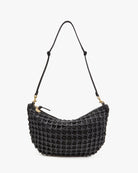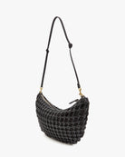 - Zipper closure, knotted shoulder strap