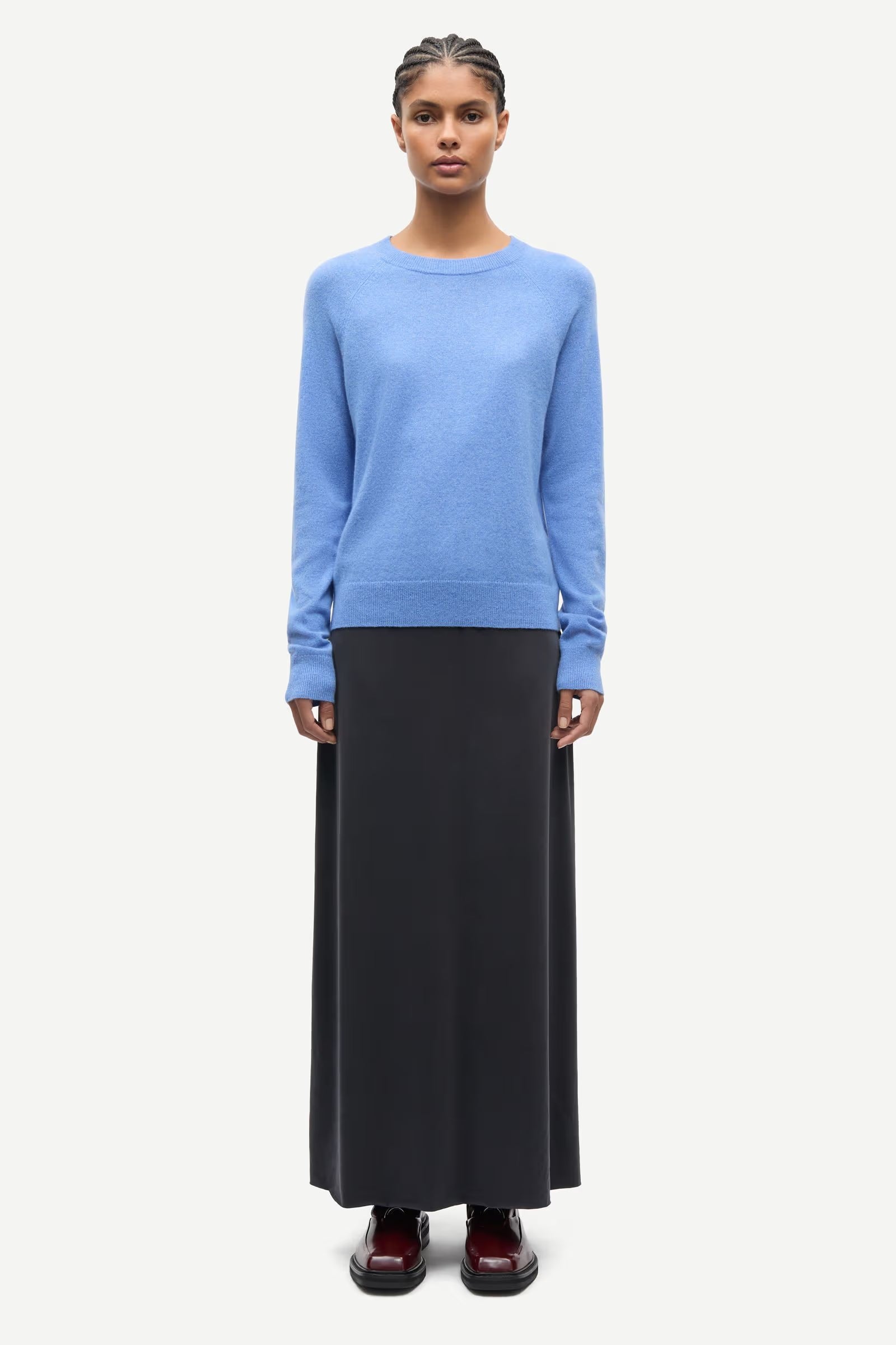 Sweater with a loose fit and raglan sleeves. Rib-knitted detailing at crewneck, cuffs and hem. Knitted with a fine gauge. Main material made from 100% cashmere. This product is GCS certified. GCS addresses the responsible production of cashmere wool.