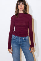 Long-sleeve draped top in the brand's soft cashmere jersey. Slim fit. High neckline. Ruching along the bodice.