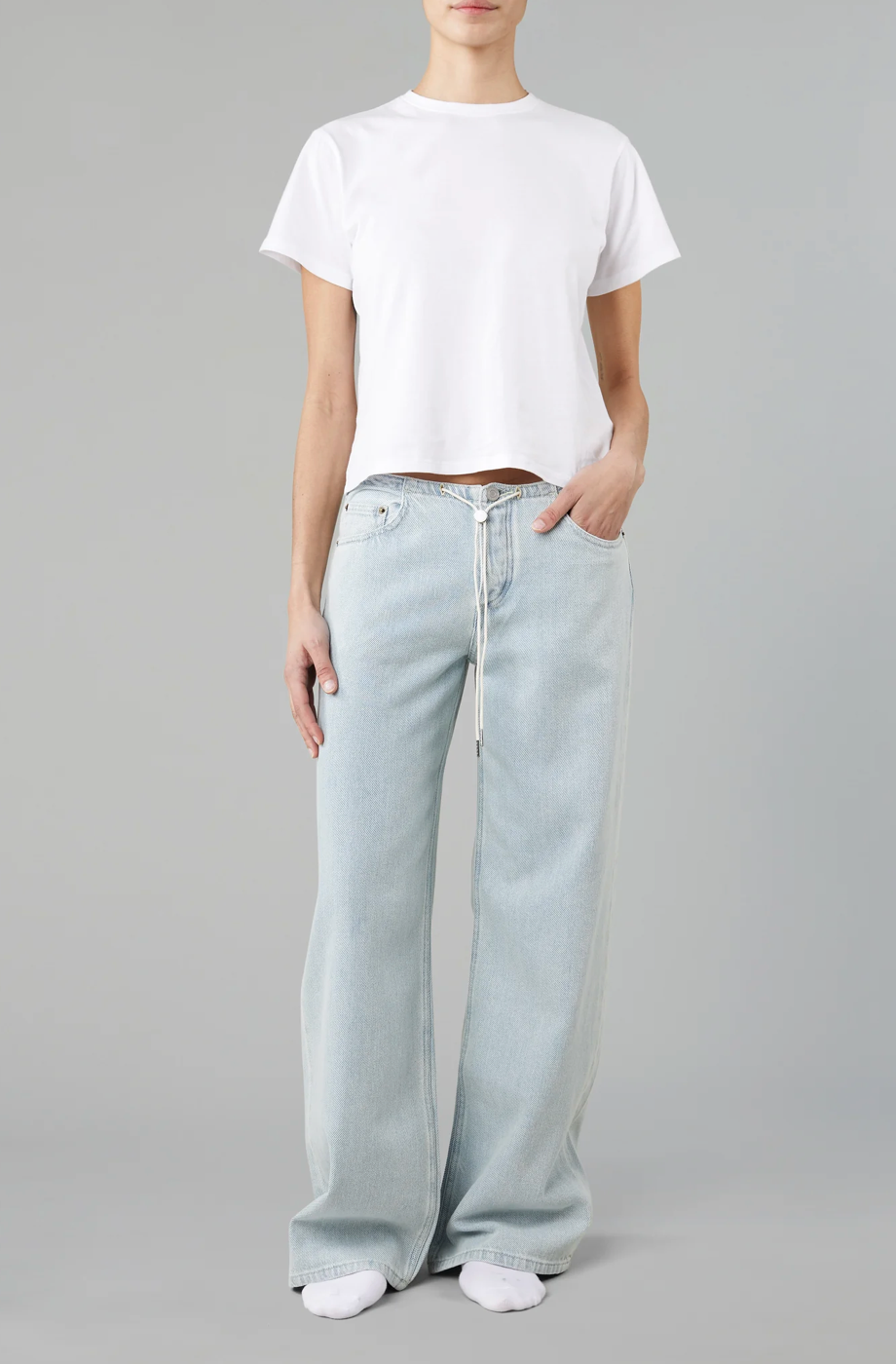 The Cool jean is a relaxed leg, low-rise jean with an adjustable drawstring toggle. The Cool has no waistband (yes, no waistband.) It features a traditional button fly, custom hardware and our signature 'SH' embroidery.