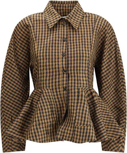 CRINKLED TAFFETA CHECK PEPLUM SHIRT