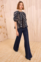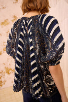 Rich in visual dialogue, the Dafne Top is cut from voile fabric with feather paisley and striped motifs that unfurl across accordion pleating. This multicolored top is structured with signature puffed sleeves and flows with poetic movement.