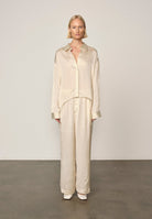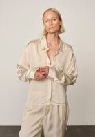 Defined by a loose silhouette with dropped shoulders, wide cuffs and subtle sheen. A timeless piece designed for effortless dressing — wear it tucked in or loose for a relaxed look.
