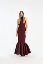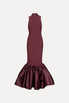 FITTED MAXI DRESS ZINFANDEL IS A SLEEVELESS, HIGH-NECK MAXI DRESS IN A BODY-HUGGING SILHOUETTE. DESIGNED WITH A WIDE, VOLUMINOUS HEM IN A SHINY FABRIC THAT CREATES A DRAMATIC FLARED FINISH AT THE BOTTOM. CLOSES AT THE BACK. COMPOSITION 1: 95% POLYESTER (RECYCLED) 5% ELASTANE