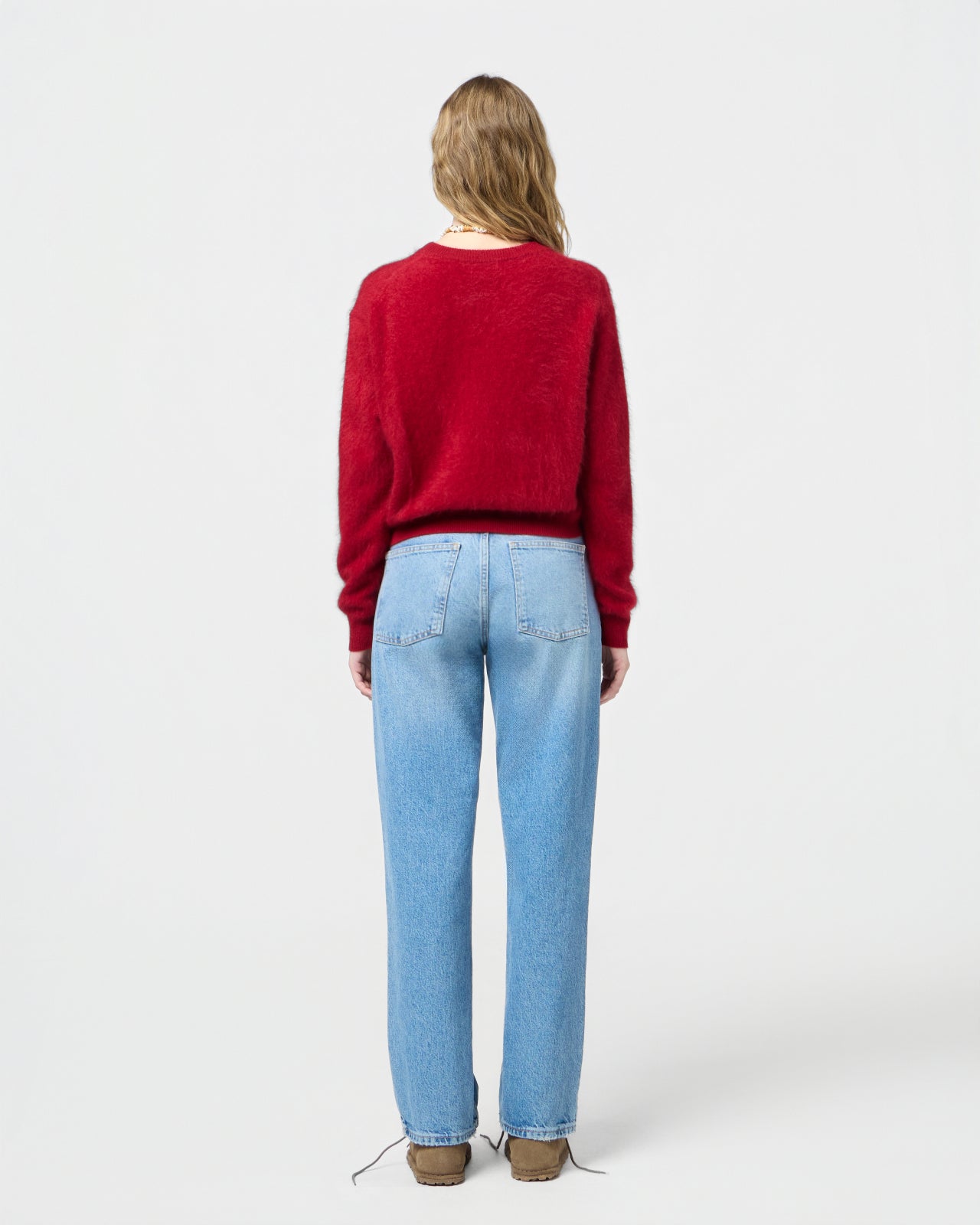 THIS GRIZZLY CREW NECK SWEATER IS KNIT FROM 100% BRUSHED CASHMERE WITH A SOFT, GRIZZLY-INSPIRED TEXTURE THAT IS LIGHT IN WEIGHT YET RICH IN TEXTURE. DESIGNED WITH A CROPPED FIT, THIS WOMEN’S CASHMERE CREW NECK IS PERFECT FOR LAYERING WITH DENIM OR DRESSES.