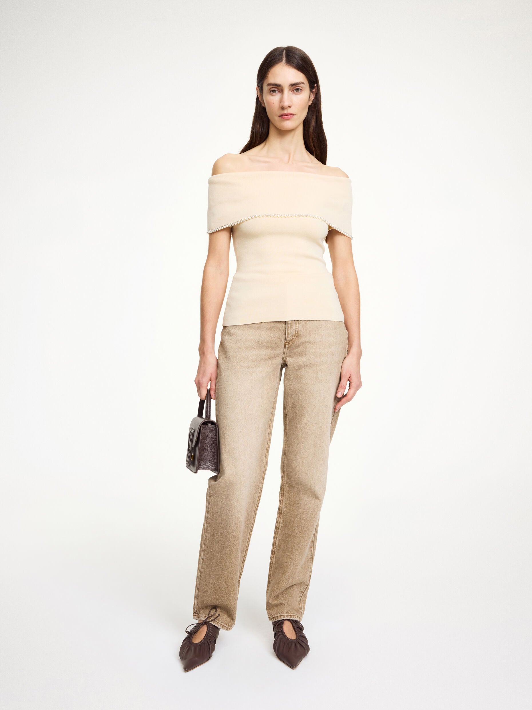 The Hetha top encapsulates the feminine elegance that By Malene Birger is known for. With its slim off-shoulder silhouette and faux pearl hem, it will instantly add sophistication year-around. Wear with voluminous bottoms to contrast the slim shape.