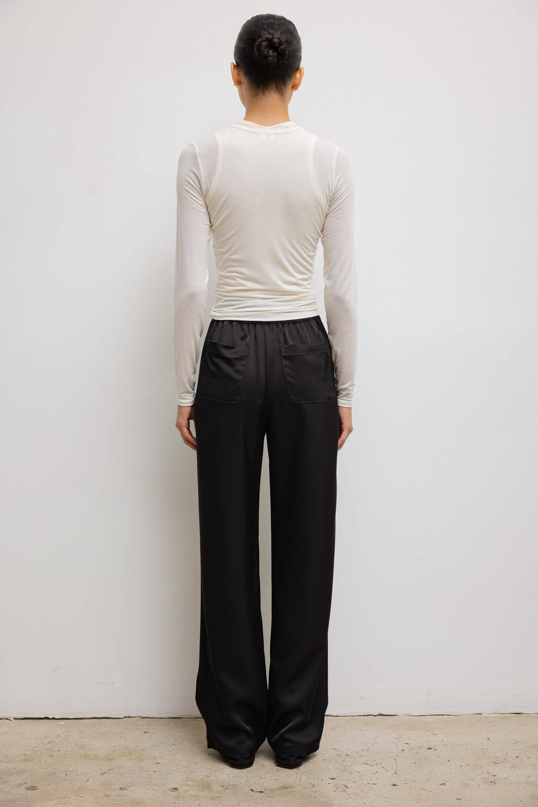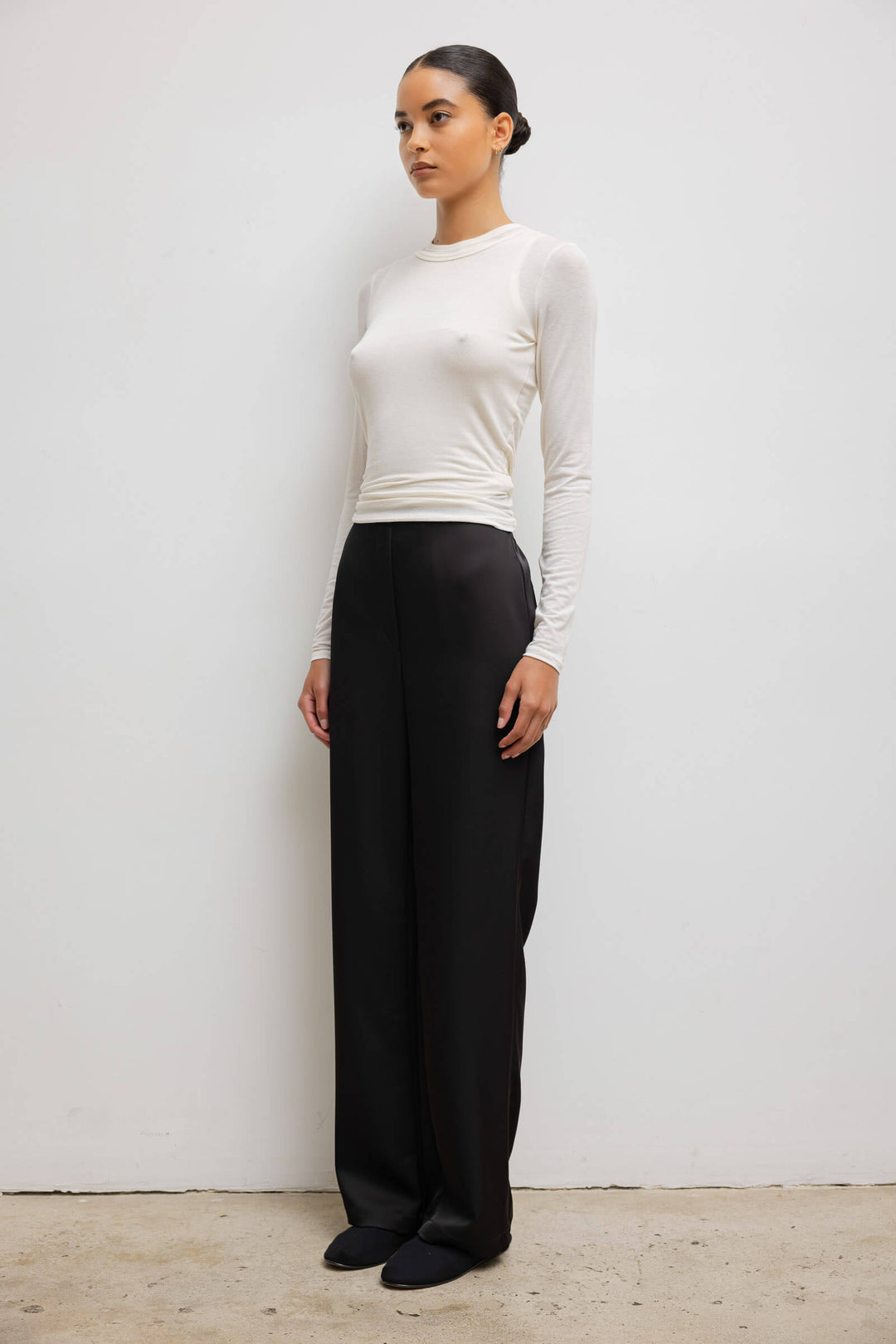 Cut in our air-light Julien cashmere modal blend, the Julien Slim Fit Long Sleeve is an essential wardrobe piece. This tee features a clean crew neckline, fitted long sleeves and a fitted full length.