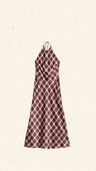Crafted from lustrous silk satin and rendered in our nostalgic Norfolk Plaid, the Maxime Dress—a favorite of our co-founder, Katherine—is a ‘70s-inspired halter dress. With a high neckline and ultra-skinny halter ties at the neck, it features a fitted bodice with an open back and a bias-cut midi hemline.