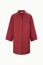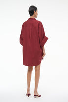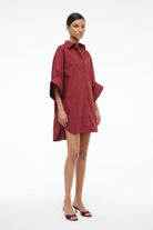 The Nico is a mini shirtdress with 3/4 length adjustable sleeves and a shirttail hem. This style is crafted from our signature cotton poplin fabric.