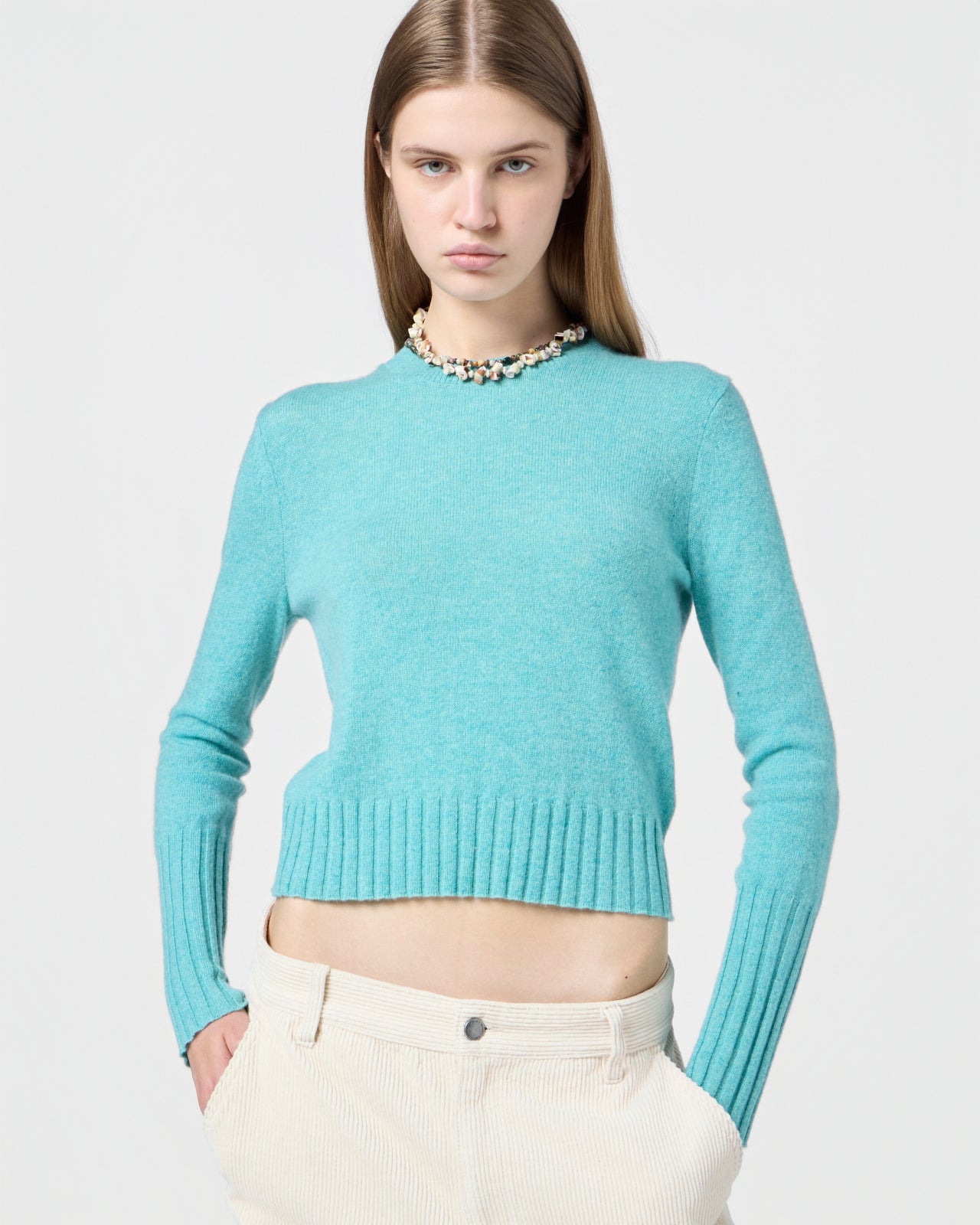 A CORE GUEST IN RESIDENCE DESIGN, THE SHRUNKEN CREW FEATURES A SLIM FIT, RIBBED TRIMS, AND LIGHTWEIGHT CASHMERE KNIT. THIS WOMEN’S CLASSIC CREW NECK SWEATER IS PERFECT LAYERED OR WORN ON ITS OWN, ADDING UNDERSTATED ELEGANCE TO ANY LOOK.