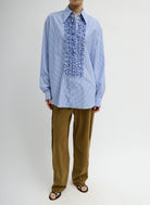 STRIPED SHIRTING EASY TUXEDO SHIRT