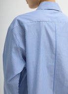 A fresh take on a classic, designed for ease. Crafted from 100% cotton with a silky-smooth finish, the Striped Shirting Easy Tuxedo Shirt reimagines the refinement of a tuxedo silhouette with effortless wearability. Cut with a relaxed shape that can be worn loose for a laid-back attitude, tucked for polish, or layered for a high-low contrast. For an easy PDW approach, style it with the Garment Dyed Stretch Tuck Pant and a Christopher Heel for the perfect balance of Chill, Modern, and Classic.