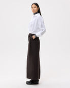 Oversized, cropped button-down shirt in cotton poplin. Relaxed silhouette with a center box pleat at the back with a gathered hem. Complete with exposed button placket, chest patch pocket, spread collar, and single-pick up button cuffs.