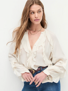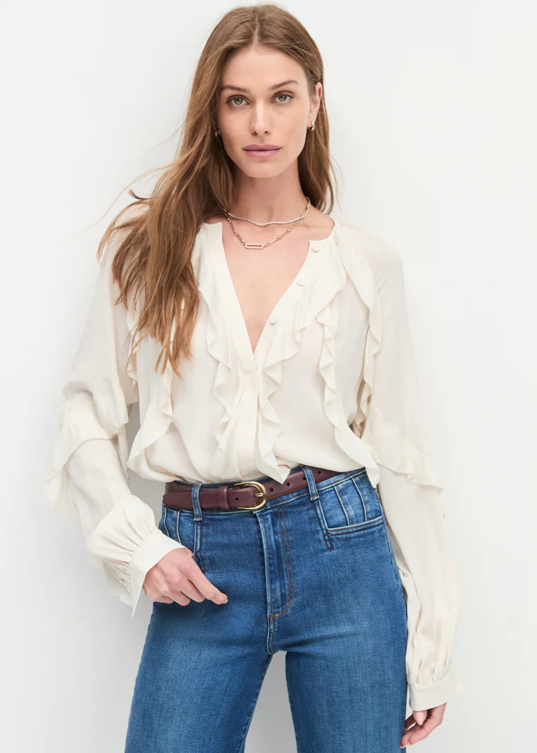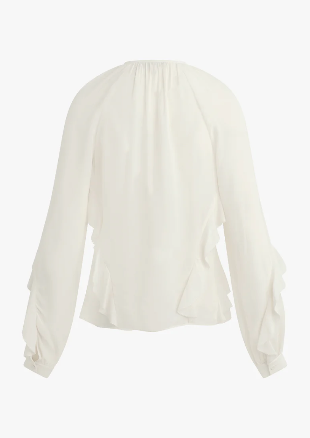 Romantic and soft with just the right amount of ruffles. Full sleeves, crew neckline, and a relaxed shape in airy viscose.