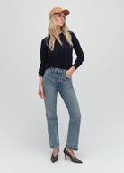 We took the softest, most luxe cashmere and made a new favorite for everyday wear. The Favorite Cashmere Crew has a relaxed, slim fit with rib trim and Favorite Daughter embroidery on the sleeve cuff.