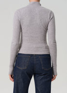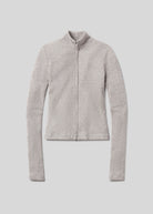 The Zip Cardigan is crafted from super soft sweater rib with the perfect amount of stretch. The light heathered grey silhouette features a fitted long sleeve design with a full zip front, offering a clean, polished look. Perfect layered over tees or worn alone with tailored pants for versatile styling.