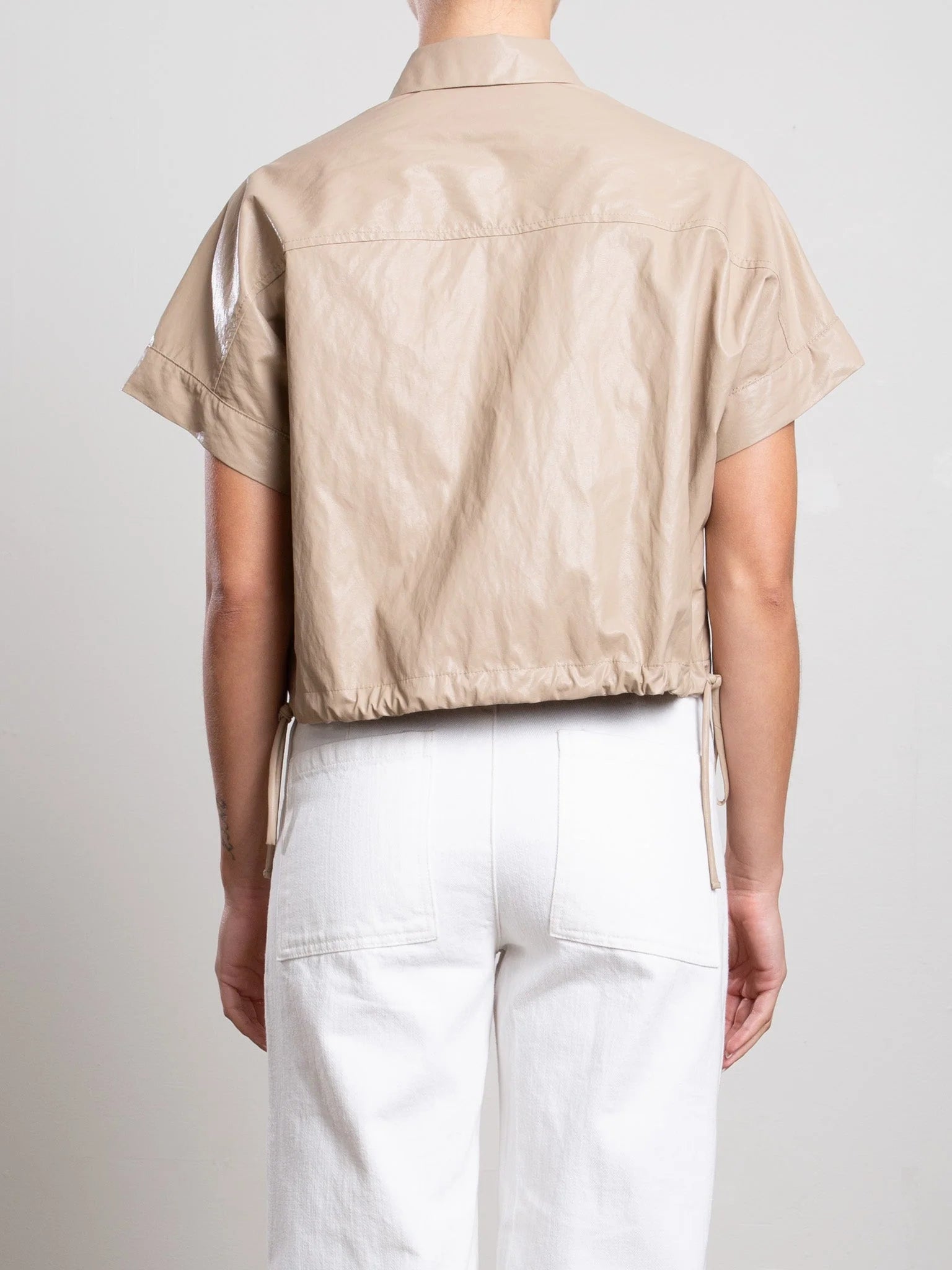 Boxy cropped shirt with adjustable drawstring in back