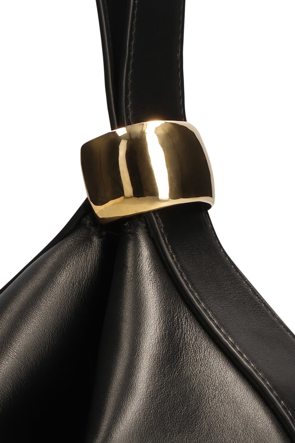 The Zambia, a small and soft Pouchette bag that defines contemporary elegance. The handle arch piece adds a distinctive flair, making it a must-have for those seeking avant-garde style. Crafted from luxurious leather, this accessory effortlessly blends sophistication with a fashion-forward edge.